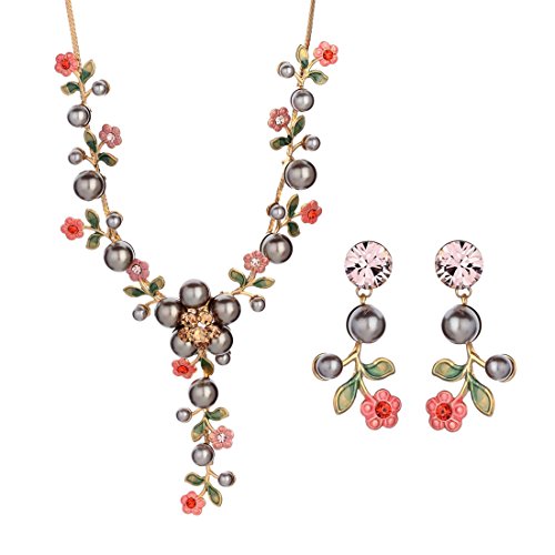 -. Title : Neoglory Jewelry Fashion SP.R.Ing Colorful Flower Engagement Sets Pearl Necklace Drop Earrings
