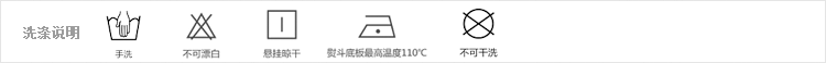 | * 建议反面轻柔洗涤,不宜用热水清洗,悬挂晾干,分色洗涤,以免衣服染色。 |