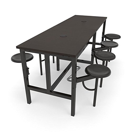 -. Feature : Standing height table with 8 seats / 300 lbs per seat weight capacity / 1" thick table top in laminate Walnut finish or Dry Erase White surface / Flip open electrical charging panel with 3 AC plugs and 2 USB ports / Swivel seats with pullout seat positioning