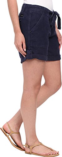 Rolled-hem short featuring front patch pockets and adjustable sash belt at waist
