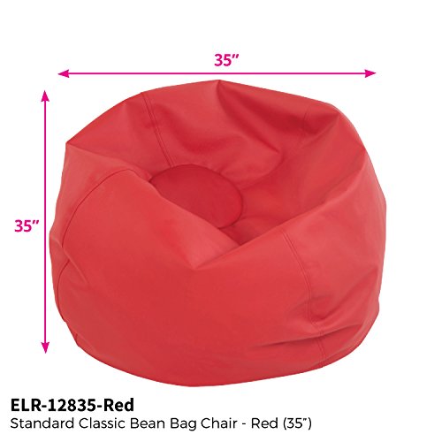 Studio : ECR4Kids Publisher : ECR4Kids Binding : Misc. Product Description The 35” Classic Bean Bag from ECR4Kids is a fun and comfortable place for children to curl up and read a book. Perfect in a classroom, daycare or home environment, the sturdy vinyl bean bag features double-stitched seams for durability and two locking-zippers to keep beads safely inside. The standard size has a 35" diameter and is recommended for use by children ages 2 and up. The ECR4Kids Classic Bean Bags are available in four attractive colors: assorted, blue, green, and red. With a concentration on the Pre K-12 sector, ECR4Kids offers a wide range of products from tables, chairs and desks to cots, mats and a variety of storage cases in solid wood as well as scratch resistant double-sided laminate. 0