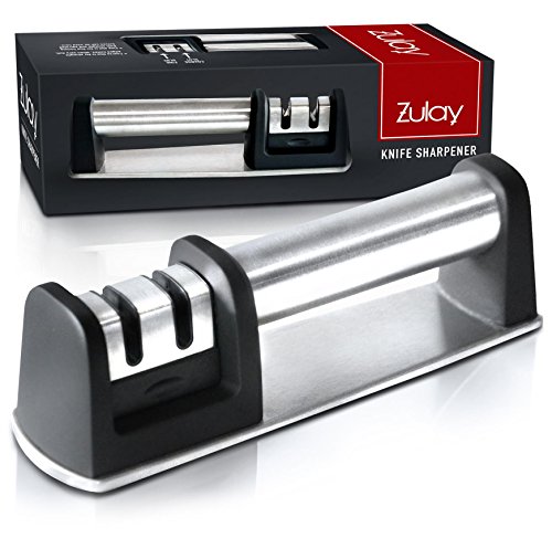 PROFESSIONAL CHEF'S TOP CHOICE Do not settle for anything but the best. The Zulay 2 stage sharpening design allows for the best of both worlds: ease of use and razor sharp precision sharpening. The coarse slot will revive very dull or damaged knives and the fine ceramic slot hones and polishes it to the perfect angle. Sharpening has never been easier.