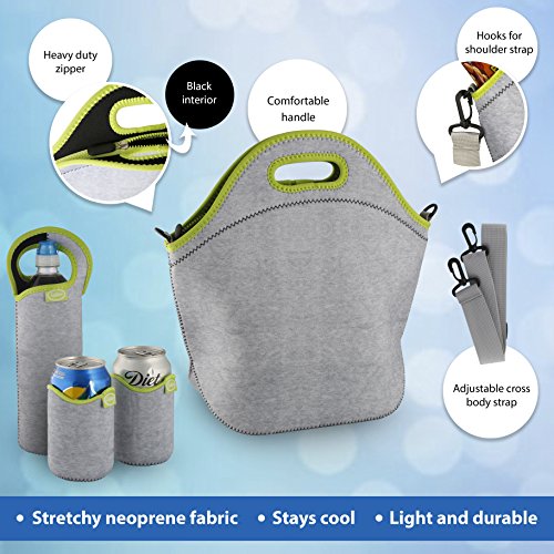 ✔ DURABLE & DEPENDABLE: Made out of stretchy neoprene fabric, the items included in this neoprene lunch bag set are strong, flexible and reliable. Use them all together or use them separately as needed.
