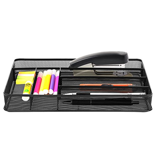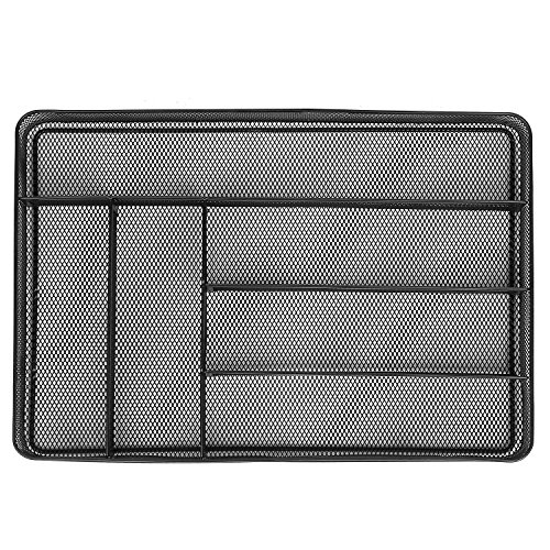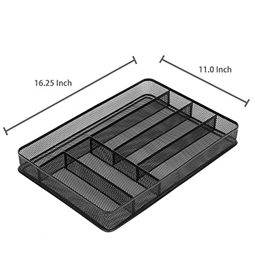 Studio : MyGift Publisher : MyGift Product Description Don't let your cutlery get cluttered or your gadget get lost, keep them all secure and in one easy to access place with this kitchen utensil holder tray. Ideal for keeping forks, knives, spoons and other kitchen gadgets neatly stored away in your drawer. This silverware organizer features 6 separate compartments with a durable metal mesh construct, perfect for your finest serving utensils. Could even be used for organizing office supplies on your desk or in a drawer. No matter where you features this steel mesh flatware tray it is sure to create organization to any drawer. **Official MyGift® product** Approximate Dimensions (in inches): 2.25 H X 16.25 W X 11.0 D. 0 |