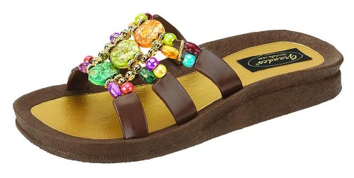 Product DescriptionThe Grandco Mystical Slide Sandals are specially designed with a molded wedge sole. Features a durable synthetic upper with jeweled and beaded accents.0