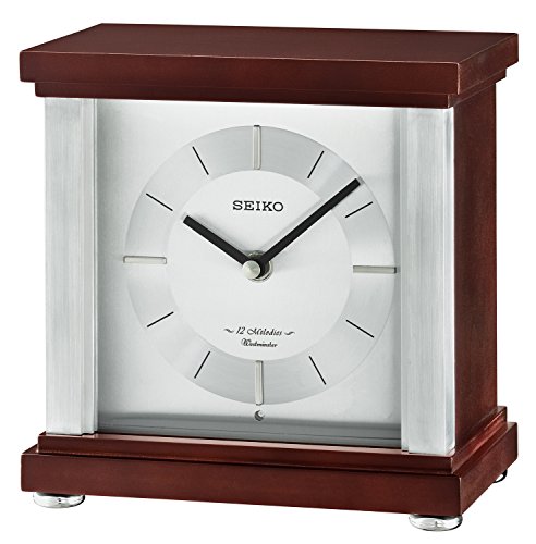 Make your workspace a little more attractive (and a lot more fun) with the Seiko 12 Melodies Analog Desk Clock. This chic clock has a wooden case in a dark brown finish and features a chic, stainless steel clock face and accents. Each hour, the clock plays to your selection of one of 12 hi-fi melodies or chimes, including Beatles hits such as “Hey Jude,” “In My Life,” “Let It Be,” “Michelle,” “The Long And Winding Road,” and “Yesterday.” Once the holidays come around, get festive with “Deck The Halls,” “O Tannenbaum,” “We Wish You A Merry Christmas,” “Joy To The World,” “Silent Night,” or “Jingle Bells.” If you like things a little more classic, you can always select the traditional Westminster hourly chime, too. Each chime’s volume is easily adjustable and can even be silenced during the night. Over its 120 year history as a maker of fine timepieces, the Seiko name has become synonymous with cutting edge technology, ultra-precision, constant innovation and refinement. Millions worldwide rely on Seiko wristwatches to keep them on schedule. Two generations have grown up thrilling to Olympic and World Cup competitions where victory or defeat is defined within a fraction of a second, all overseen by Seiko timekeepers. 7.25H x 7.25W x 4.25D in.. Rich brown wooden case. Stainless steel accents. Hourly strike plays 1 of 14 melodies or chimes. Nighttime silence and volume control. Requires 3 AA batteries (not included).Feature