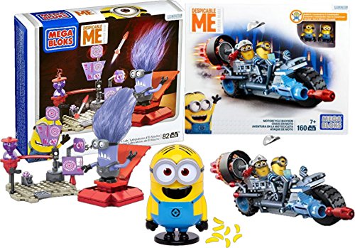 -. Title : Despicable Me Mega Bloks Minion El Macho's Lab Play Set, Motorcycle Mayhem and Me Minion Made Big Mouth Banana Candy Dispenser