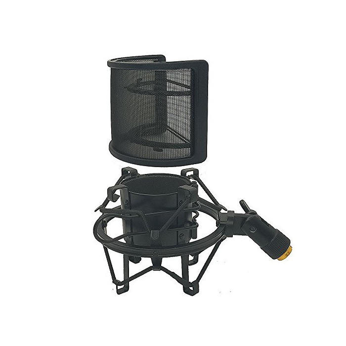 PUDOON 쇼크 마운트 와 POP 가이드 세트 U형 금속 넷층 바람 스크린 노이즈 방지 진동 방지 46mm-53mm의 마이크 대응 (블랙)