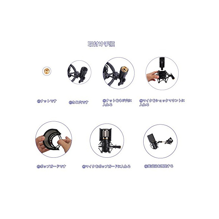 마이크 스탠드의 넥 부분으로 설치 만의 간단 장착.어느 마이크 붐으로도 설치됩니다.마이크 홀더용 변환 어댑터 (3/8'-5/8')고, 고정 노브 부착 앵글 조정 기능을 준비 있습니다.