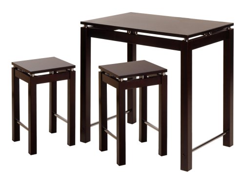 -. Feature : Kitchen Island table with added style. / Put this kitchen island table with 2 stools and create a great dining area / Made of solid/composite wood in Dark Espresso Finish / Assembly Required
