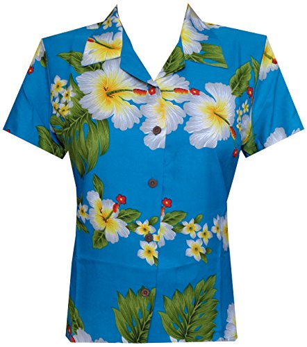 Hawaiian Shirts10A Women Hibiscus Flower Aloha Beach Top Blouse Casual Blue XL