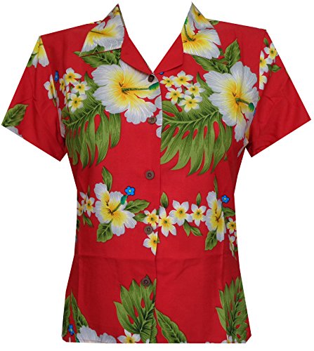 Hawaiian Shirts10A Women Hibiscus Flower Aloha Beach Top Blouse Casual Red L