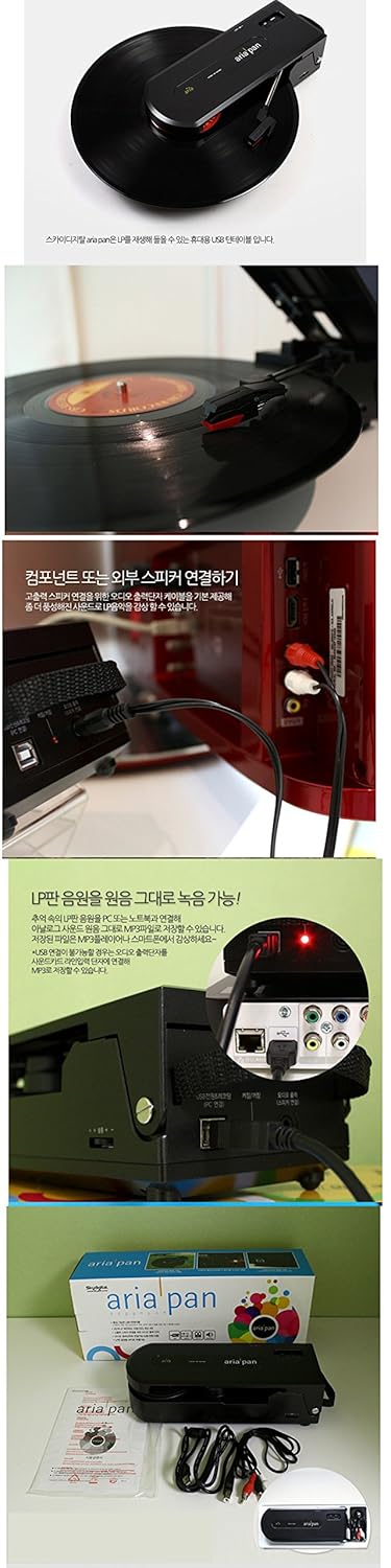 Portable Turntable Built-in speakers LP speed control: Step 2 File conversion (LP → MP3) Carrying Handle Power: AA battery x4 (sold separately), USB Weight: 632g
