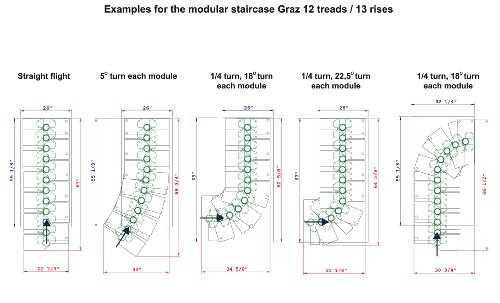 - Feature : Kit staircase with 12 treads all-in-a-box; Banister included; Adjustable Rise between treads 8"-9.5" / Multiple angle installations to fit almost every need; Flexible straight flight or 1/4 turn assembly / Complete installation guide and toll free support / For frequent interior use; COLOR: Black / 1-year warranty