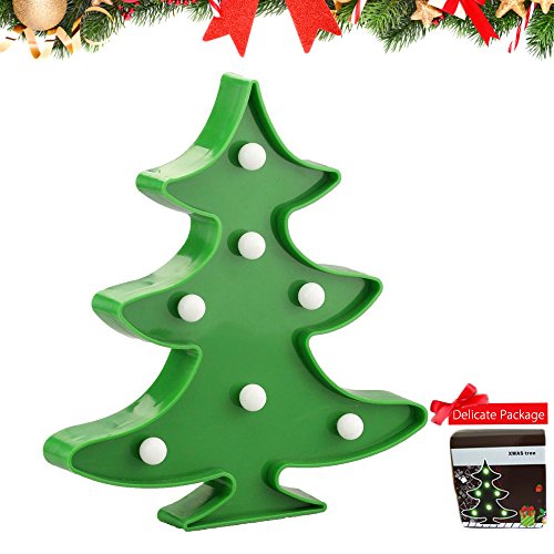 3D LED Christmas Tree Marquee Lights, CNGULES Romantic Plastic Christmas Tree Shape Desk Lamps, 7 LED Warm White Christmas Tree Night Light for Christmas, Party, Home, Holiday Decorations