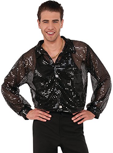 -. Brand : Pizazz -. ClothingSize : Mens Medium (38-40) - XL (48) -. Color : Black -. Department : mens -. Feature : Brand new Fantastic Quality 70s Standard Disco King costume / Teen & Adult Size Mens Medium (38-40) - XL (48), approx ages 18-188. Measurements provided by Pizazz and are approximate. / This posting includes: Long sleeve black sequin disco shirt as featured / Please note that only the items listed above are included -. Label : Pizazz -. Manufacturer : Pizazz -. MPN : PZ03493-BLACK -. NumberOfItems : 1 -. PartNumber : PZ03493-BLACK -. ProductGroup : Apparel -. ProductTypeName : ADULT_COSTUME -. Publisher : Pizazz -. Size : Mens Medium (38-40) - XL (48) -. Studio : Pizazz -. Title : Men's 70s Dancing King Black Sequin Disco Shirt Costume