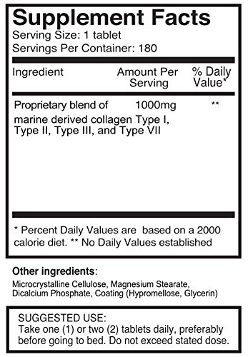 -. Title : UltraColl Marine Collagen 1000mg x 360 tablets (2 bottles of 180 tablets - 6 months supply). The only patented anti-aging collagen types I, II, III, and VII. SKU: UC3x2