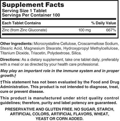 -. Title : Nature's Blend Zinc Gluconate 100 mg, 100 Tablets
