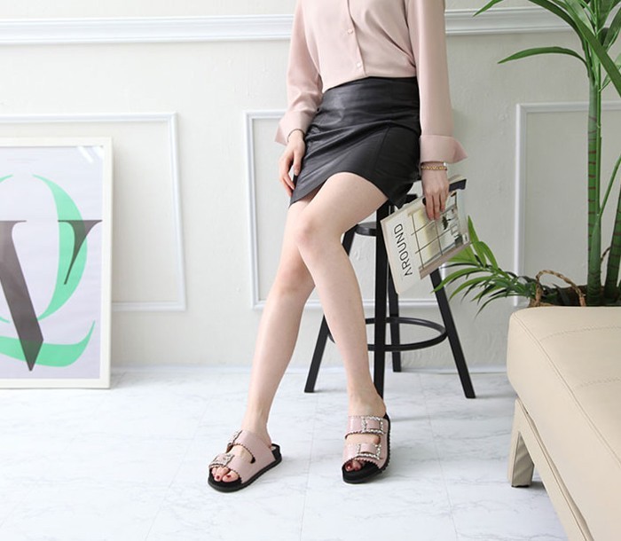商品名:サンダル レディース ビジュー ペタンコ 2018 春 ファッション 靴 婦人靴