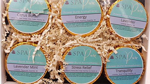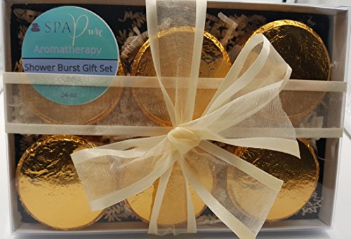 Spa Pure Luxury Aromatherapy Shower Tablet Gift Set, 6 individually wrapped - 4 oz tablets, shower fizzies in GOLD foils, makes an amazing Gift (GOLD)