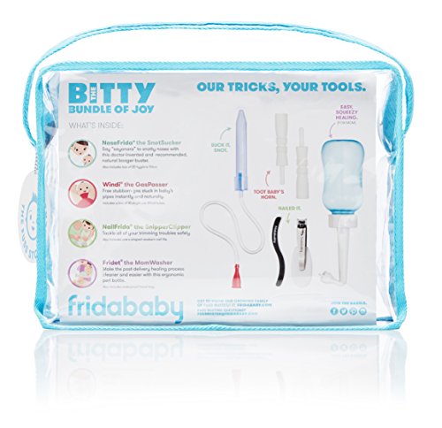 GREAT VALUE. Contains one Nose Frida the SnotSucker, 20 Nose Frida Hygiene Filters, 10 Windi the Gas Passer instant gas relief tubes, a Nail Frida Snipper Clipper set with clippers and a newborn file, a Fridet Mom Washer, and a waterproof Fridet pouch