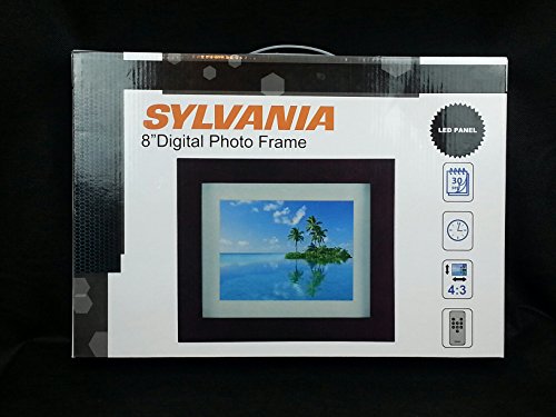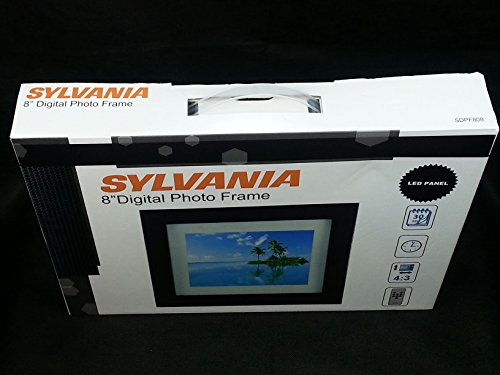 -. Feature : Display your photographs with elan using the Sylvania Eight-inch Premium Digital Photo Frame. Available in cream matte and espresso wood color combo, this wood digital photo frame complements any decor. As this JPEG digital photo frame is compatible with many formats of memory cards, you can store and display tons of photographs with it. The photo playback modes offered in this photo frame include auto slide show, zoom out, and zoom in. This LED digital photo frame comes with a remote control, USB cable, and stand. Sylvania Eight-inch Premium Digital Photo Frame: 8" LED display with 800 x 600 resolution and a 4:3 aspect ratio Multi-format card reader is compatible with : SD, MMC, MS, USB Supports JPEG image format Includes remote control Additional Features: Clock and Calendar, Slideshow mode Model No.: SDPF808 UPC No. : 058465777739