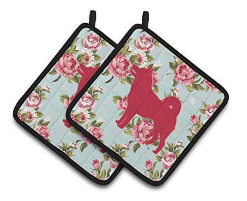Caroline's Treasures Shiba Inu Shabby Chic Blue Roses Pair of Pot Holders BB1067-RS-BU-PTHD, 7.5HX7.5W, Multicolor