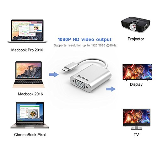 USB C TO VGA Adapter,Belinda USB 3.1 Type C (USB-C) to VGA Adapter With Aluminium Case for 2017 MacBook Pro/Samsung Galaxy S8