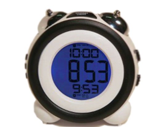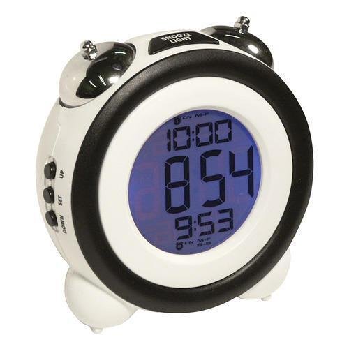 Studio : Sonnet Publisher : Sonnet Binding : Kitchen Product Description To ensure split second accuracy, this alarm clock automatically receives a Radio Controlled signal from the WWVB US Official Atomic Clock in Fort Collin CO daily. It features loud twin bell alarms that will sure to wake you up and operates at two different times independently, and can be set at a weekday or weekend. Additional features include, top mounted light button, snooze button, 3 base stands for stability and durable white plastic case. Atomic Digital LCD Alarm Clock Twin mechanical loud bell alarms Easy to see 3/4 high Numbers Dual Independent Alarms Two alarm options; weekday and weekend Snooze function Bright blue light on demand Super Cute Feet and Tail for extra stability Bright White Durable Plastic Casing Requires 3 AAA batteries (not included). Approximate Dimensions: 4 L x 4.25: H x 2.75 Approximate Weight: 6.4 oz 0