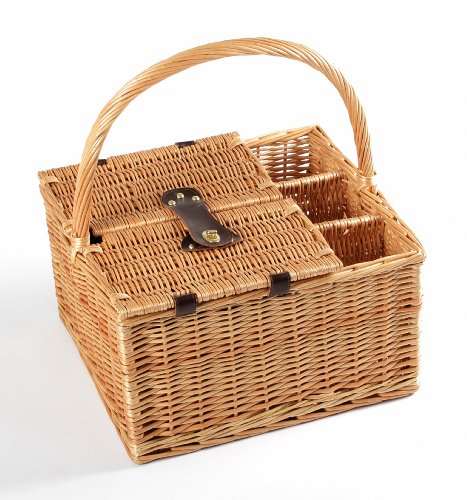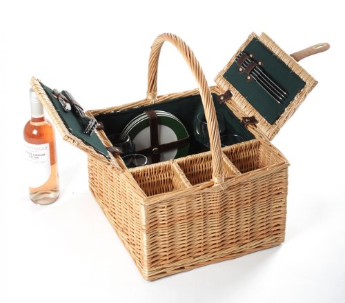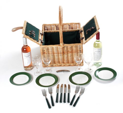 Greenfield Collection Luxury Four Person Windsor Buff Willow and Ocean Blue Lining Picnic Hamper
