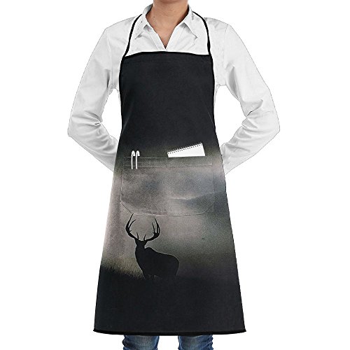 -. Title : 闇からの鹿 エプロン ポケット付 フリーサイズ 首掛け 男女兼用 キッチン カフェ風 保育士 雑貨屋店員 料理 絵画 防水 防油