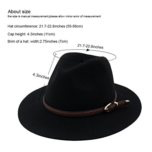 Binding : Apparel Product Description Description 1.Material: High-quality Wool. 2.One Size Fits Most Adults,Cloche Hat,Bucket Hat,Trilby Hat,Fedora Hat,Bowler Hat,Winter Hat,Vintage 3.Hat head circumference around from 55 to 58 cm. Hat height of about 11CM and brim width: about 7cm. Suitable for women,girls, youngster. 4.This Fedora Hat is cut from the softest wool-felt so it feels luxuriously warm and cozy. 5.Perfect for many special occasions such as wedding, tea parties, church or simply cold weather hat. 6.The cloche bucket is crushable and can won't be misshapen when stuffed into suitcase,backpack and pocket. Great for travel and outdoor. 7.Please allow 1-2CM differs due to manual measurement ,Thanks for your understanding. Product Specification: 1.Quantity:1pc 2.Color: As the picture shows 3.Material:wool. 4.Size:One Size 5.Weight:110g Package Content: (Send without retail package) 1x Fedora Hat