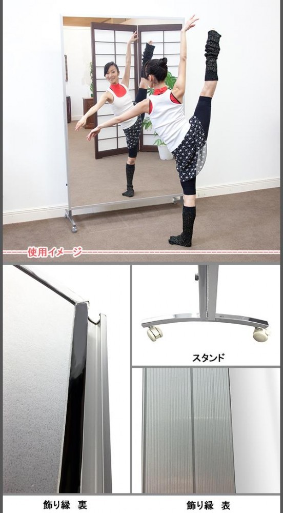 | サイズ | ミラー:116×180cm、幅:127.2cm、総丈(キャスターを含めた高さ):194cm、キャスター部奥行:45.5cm 個装サイズ:186×121×7cm |