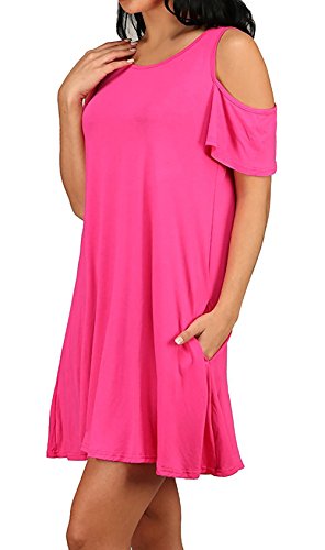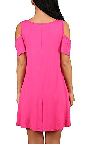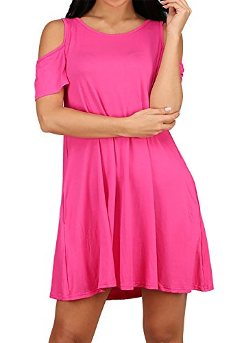 Yidarton Women's Cold Shoulder Off Loose Fit Tunic T-Shirt Dress with Pockets Rose M