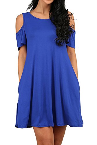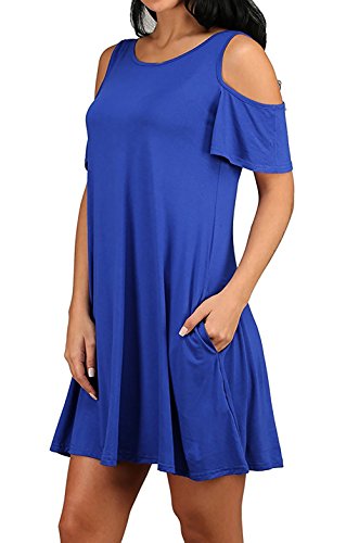Yidarton Women's Cold Shoulder Off Loose Fit Tunic T-Shirt Dress with Pockets RoyalBlue S