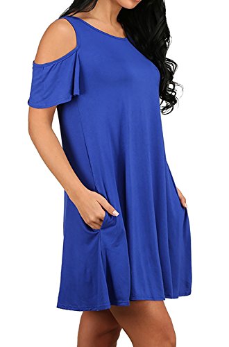 Yidarton Women's Cold Shoulder Off Loose Fit Tunic T-Shirt Dress with Pockets RoyalBlue L