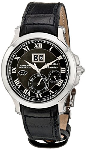 -. Title : Seiko Men's SNP041P2 Leather Synthetic Analog with Black Dial Watch