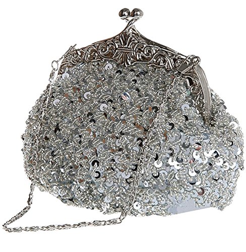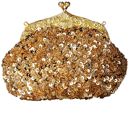 Bywen Womens Sequined and Beaded Purse Party Clutch Shoulder Bags