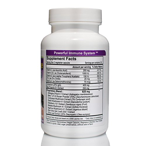 -. Title : Powermuno Premium Immune Booster, Immune Support Formula 150 Vegetarian Capsules- Beta Glucan, Elderberry, Astragalus, Reishi, Cordyceps, Maitake, Agaricus Mushroom, Aloe Vera, Olive Leaf