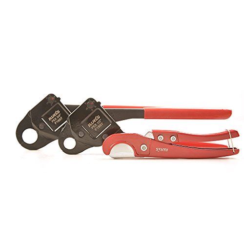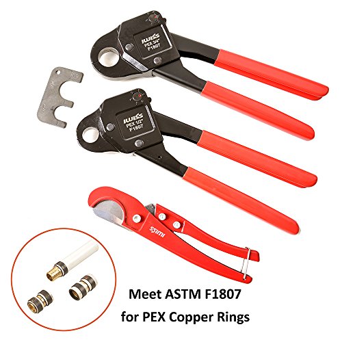 Iwiss Set of 2 PEX Crimper Crimping Tools with 1/2" & 3/4" Angle with "Go-No Go" Calibrate Gauge Tool One PEX Pipe Tube Cutters for FREE!!