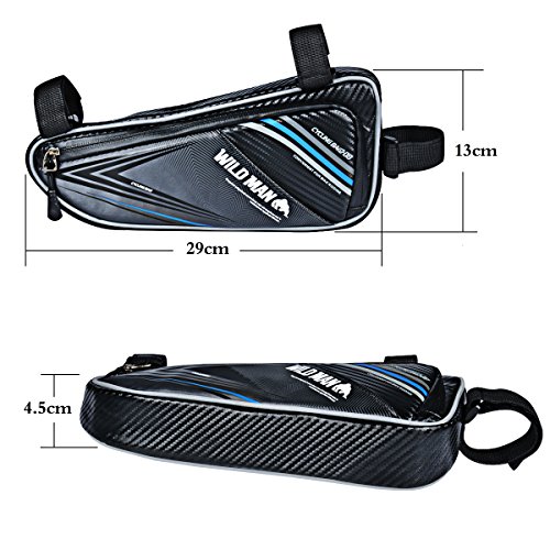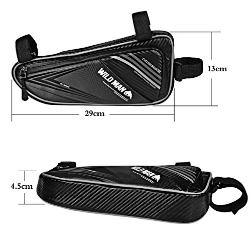 Waterproof material with PU, you can use it even in rainy days Reflective tape for safe riding at night, keep you safe while cycling Triangle frame bag comes with three vlecros at the bottom to firmly installed Suitable for a variety of bicycles and outdoor cycling, like MTB, trekking bikes, folding bikes and road bikes etc..
