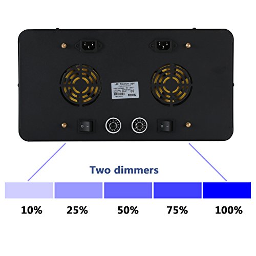 - Dimmable Intensity:The light intensity can be adjusted with dial from 0% to 100%, which enables you to adjust it to the best intensity for the growth of your coral, no need to worry it will occur bleach anymore