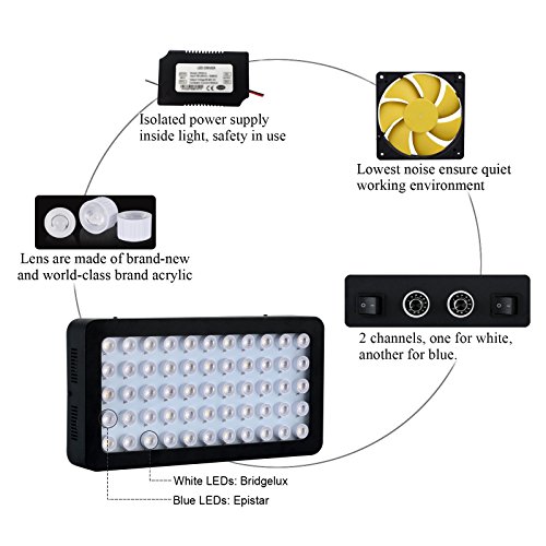Galaxyhydro Led 55x3w Dimmable 165w Full Spectrum LED Aquarium Light for Reef Coral & Fish