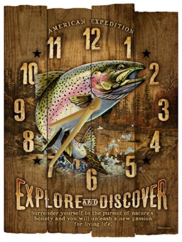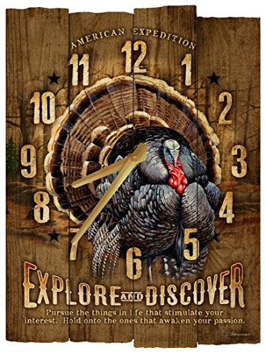 American Expedition Rustic Wooden Wall Clock uses real textured wood with varying length slats to create an incredibly unique wall decor item. The full-color illustrations combine with the rustic wood to create a great looking clock for any wildlife lover's wall. Each clock measure 11.5" x 14.75" and requires one AA battery (not included).