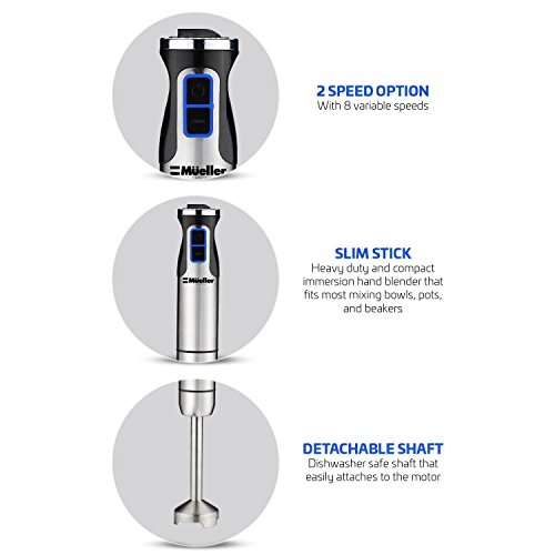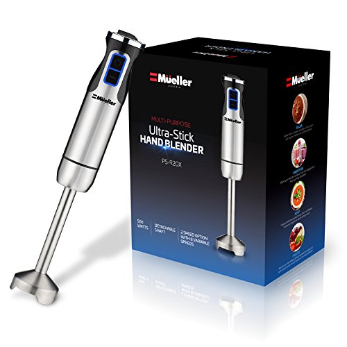 Designed and engineered to outlast and outperform the competition. Comfortable and easy to use, makes all your mixing/blending tasks easier than ever! The Mueller Ultra-Stick 9-Speed Hand Blender is one countertop appliance with limitless options and versatility. The blending arm reaches perfectly into deeper pots. Let's you blend, puree, and crush with ease. 9 speeds provide control for food, such as, smoothies, soups, or baby food. The blending arm twists off for quick and easy cleanup.Feature