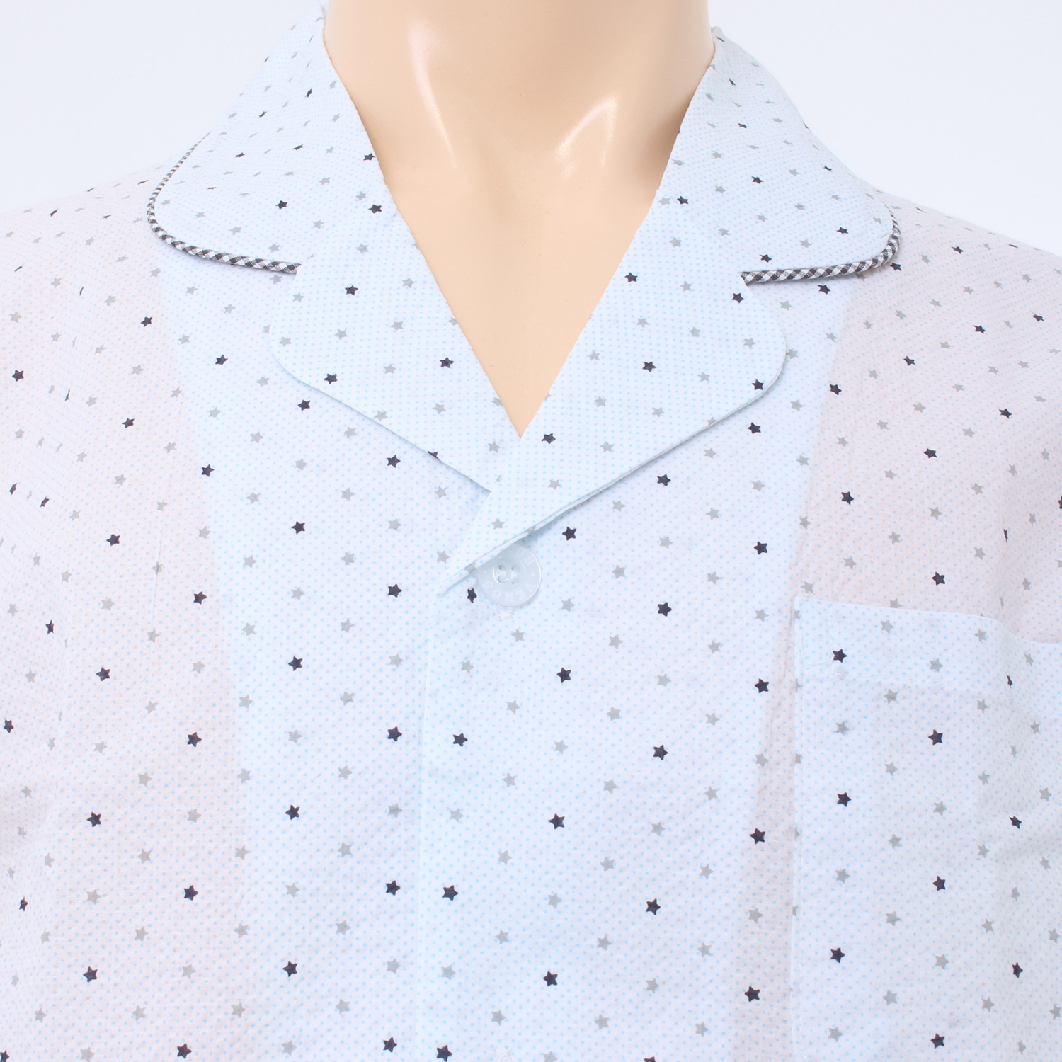 작은 별나염이 프린트된 면 100% 리플 소재로 만들어진 파자마 입니다. 몸에 달라붙지않도록 엠보 가공을 한 리플소재는 더운 여름 사랑받고