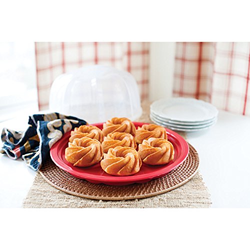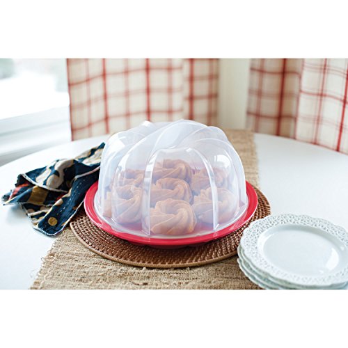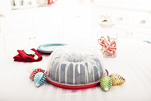 Studio : Nordic Ware Publisher : Nordic Ware Binding : Kitchen Product Description Have you ever baked a beautiful cake to take to a party or potluck and momentarily panicked as you realized how difficult it would be to transport it without ruining the cake? avid bakers find themselves in this predicament frequently and can attest to the fact that having a safe transportation container is key! the Bundt cake keeper is the perfect solution to this age-old problem. Place your freshly-baked Bundt cake inside, set the cover on top and twist to lock the cake safely inside. You're now ready for transportation to and from a party. Best of all, the cake keeper will keep your cakes fresh and looks great sitting on your countertop. The cake keeper is very durable and can be put through your dishwasher for simple cleanup. Base comes in assorted colors. BPA- and melamine-free plastic. 0