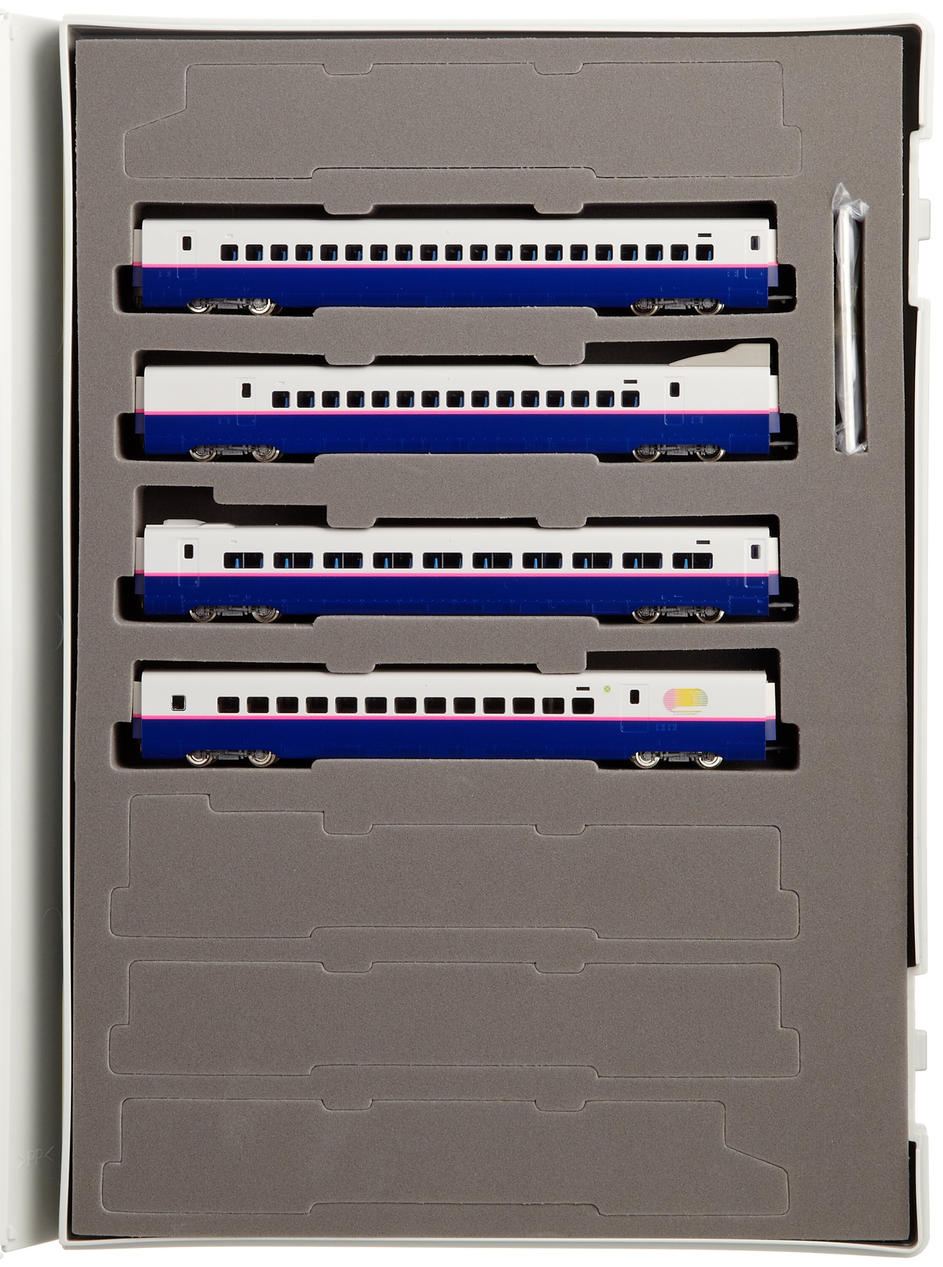 Tohoku Shinkansen 100% increase for 4 sets, Equipped with hook & ring type electrifying coupler, New current collecting system, Silver wheel adoption, Logo mark printed, Green mark printed, Roof top with separate parts, Color ceiling of roof slip prevention