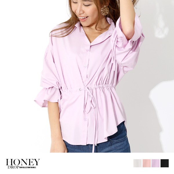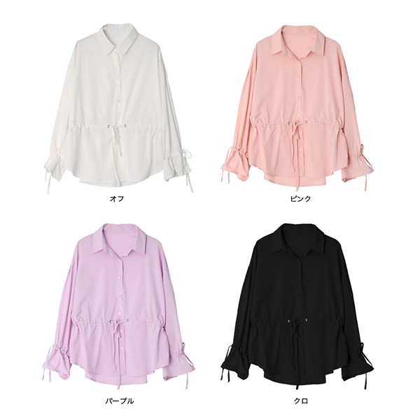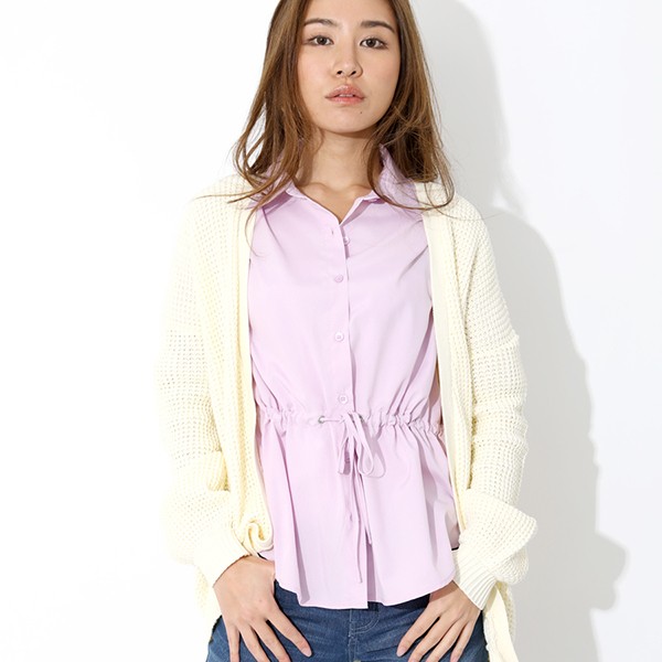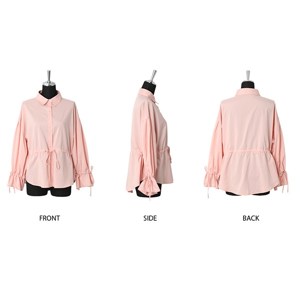 袖とウエストを絞ってブラウジングさせて着こなすシャツ。