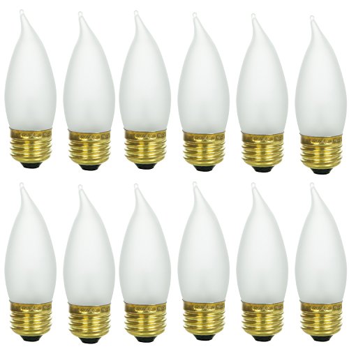 Sunlite 40EFF/32/12PK Medium (E26) Base Flame Tip 40W Incandescent Chandelier Frosted Bulb (12 Pack)